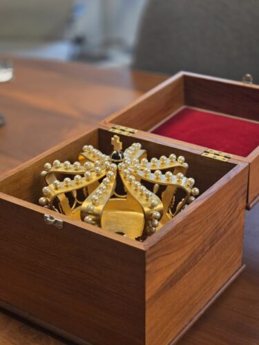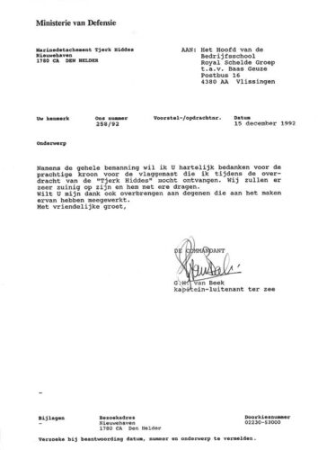 Bekijk hieronder extra beelden van de kroon en brieven geschreven door de commandant van Hr.Ms. Tjerk Hiddes en Thijs Geuze.